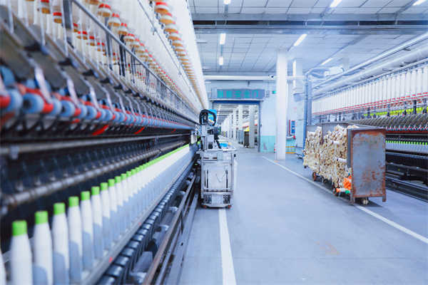 5月27日,在山东省东营市利津县三阳纺织有限公司智能纺织数字化车间,智能落纱小车正在飞速地拔纱、插管,没有了纺织工人忙碌的场面。三阳纺织有限公司副总工程师刘照臣说:“以前人工落纱,一组需要四个人,最熟练的操作工也需要8分钟时间,现在只需要一名工人看着就行,单面600锭落纱时间只需5分钟。”通过数字化车间智能改造,三阳纺织每年可节约用工成本300万元,节约用电量1600万千瓦时,节省成本1200万元。