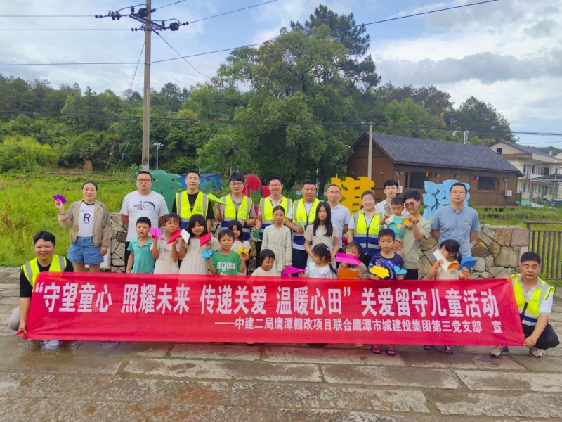 守望童心,照耀未来,传递关爱,温暖心田!为持续加强爱心帮扶力度,不断加大对留守儿童的关爱保护工作。近日,中建二局携手鹰潭市城投集团第三党支部在贵溪市金屯镇渡坊水村“童心港湾”联合“欢庆六一 齐献爱心”儿童节主题活动。