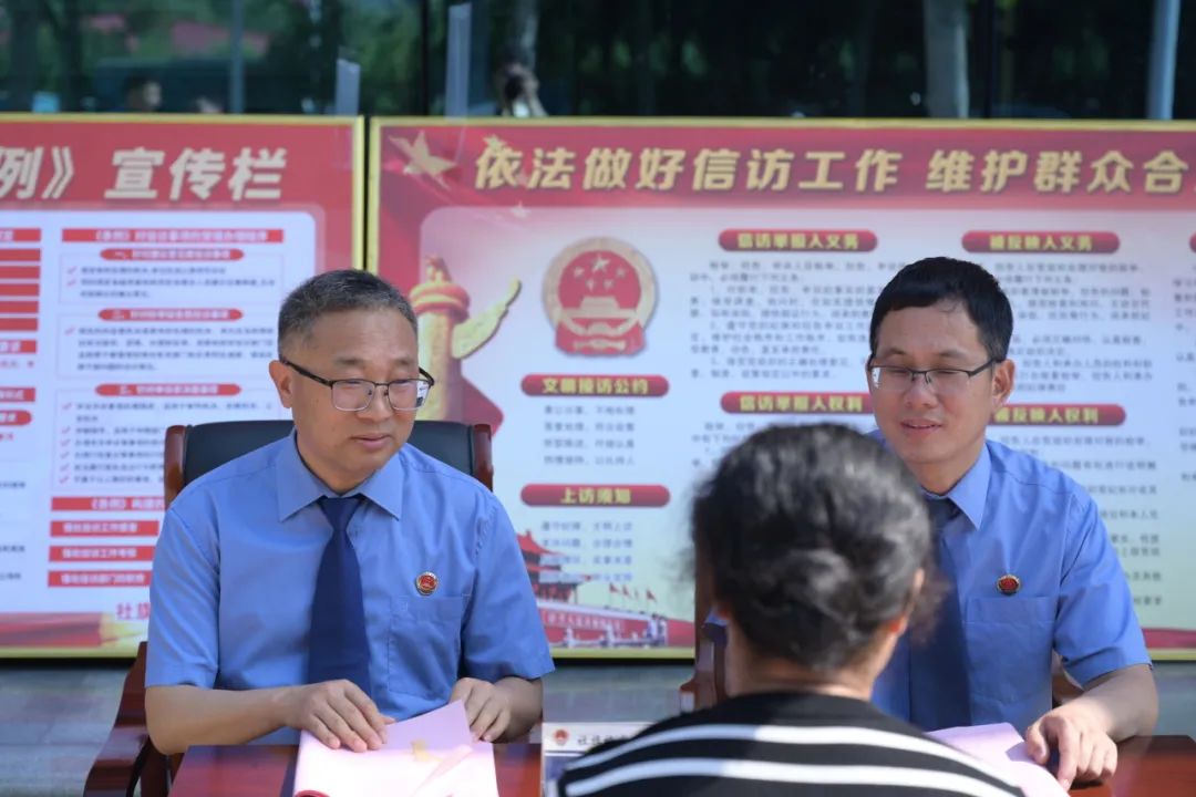 社旗县检察院党组书记、检察长赵玉建来到宣传现场,接受群众咨询。他表示,要认真落实贯彻《信访工作条例》,用心用情办理群众来信来访,持续加强信访问题源头治理和积案化解,深入推进信访工作法治化。