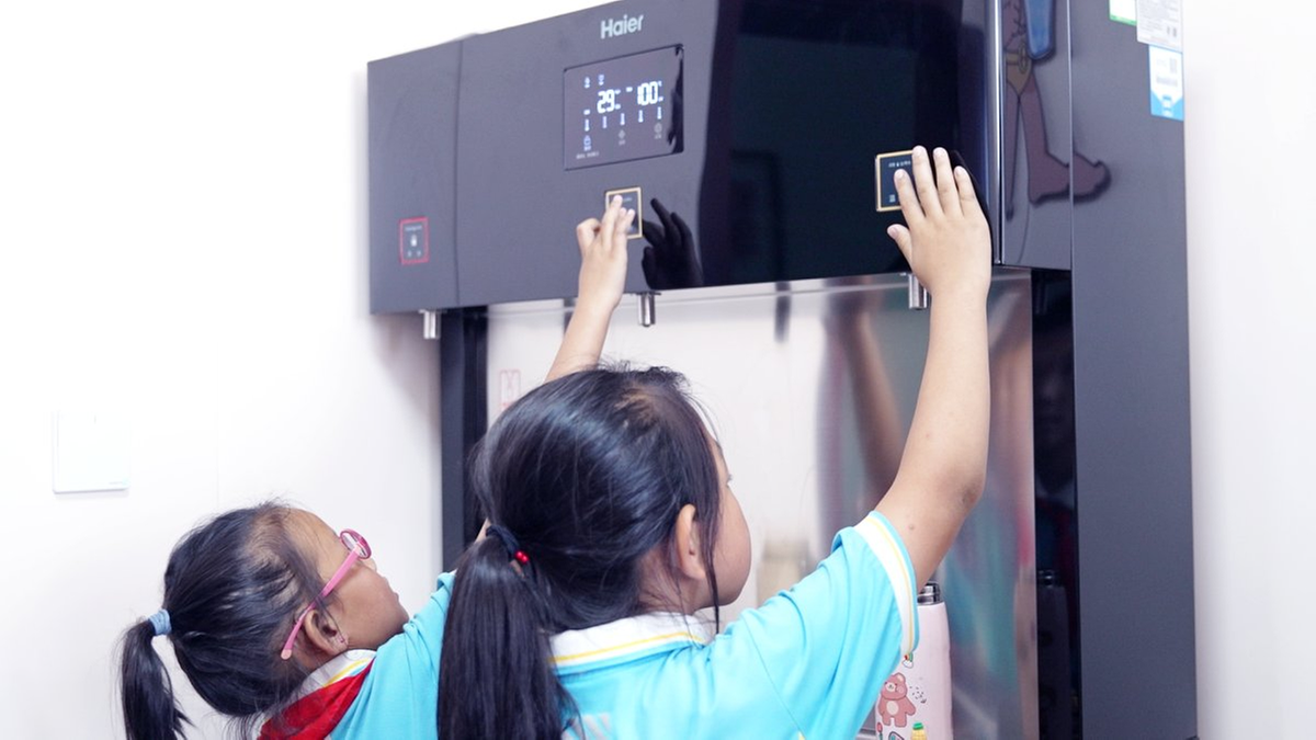 为了改善这一状况,海尔水联网为巴林左旗海尔希望小学捐赠了商用净水机,在学生宿舍打造了“健康饮水角”,并通过充满童趣的健康饮水小贴士,提醒小学生们养成健康的饮水习惯,解决了全校423名学生在宿舍饮水不便的问题,在寒冷的冬天也能随时喝到纯净的热水。