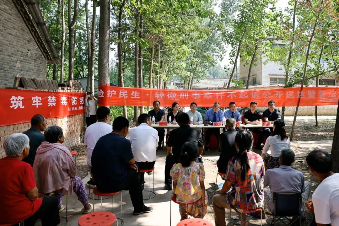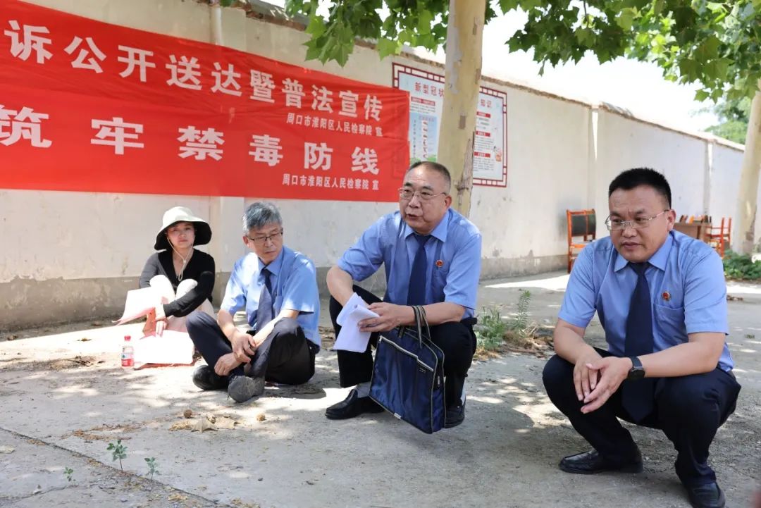 活动现场,淮阳区人民检察院普法宣讲员联合区人大代表、政协委员和当地村镇工作人员,悬挂禁毒宣传横幅、设置咨询台、摆放禁毒宣传资料。检察官席地而坐用通俗易懂的语言向群众讲解区检察院办理的涉毒真实案例,普及毒品犯罪危害后果、毒品常识和毒品犯罪的法律知识,讲述吸毒对个人、家庭和社会带来的严重危害,引导群众抵御各种不良诱惑,远离毒品,切实增强群众的禁毒意识、法治观念。