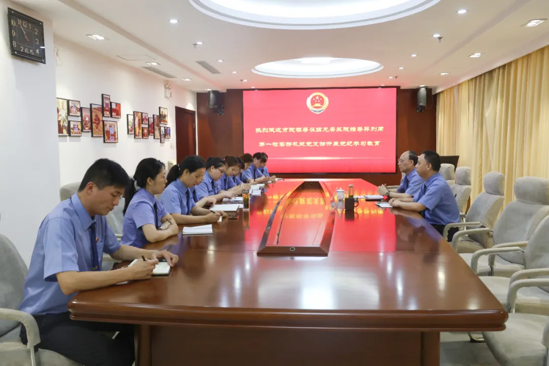 为进一步促进上下级党组织之间的紧密联系,加强对基层院党支部工作的具体指导,近日,安阳市人民检察院党组成员、副检察长李树旗,龙安区检察院党组书记、检察长祝现明参加龙安区院第一检察部机关党支部党员大会,与支部全体党员开展党纪学习教育交流学习。