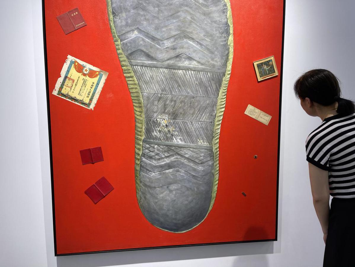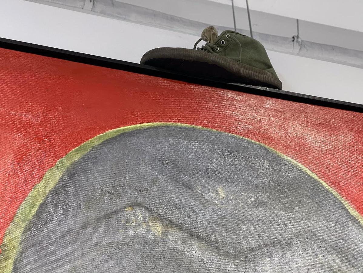 近日,上海M50艺术园区杨烨炘艺术中心内,一幅名为《我留给这个世界的痕迹》的油画新作引发众多市民围观讨论,该油画以一只迎面而来的巨大鞋底为主角,通过对鞋底的精描细绘来揭示一名解放军战士所经历的不凡人生,用艺术家杨烨炘的话说,“鞋底是这位军人活在这个世界上的主要证据”。油画以罕见的视角去观察普通军人的一生,独特的艺术冲击力和真挚的情感打动力,甚至有观众忍不住向油画敬起了军礼。