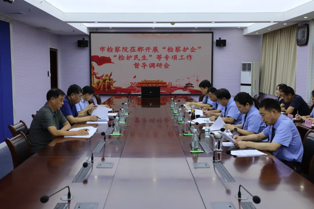 7月30日,周口市人民检察院党组成员、副检察长郭煜带队深入郸城县院就落实“检察护企”“检护民生”专项行动工作情况进行督导调研。郭煜一行通过查看资料详细了解郸城县院在“检察护企”“检护民生”推进机制、案件办理、工作成效等方面的具体情况,并召开座谈会听取两个专项行动工作汇报。
