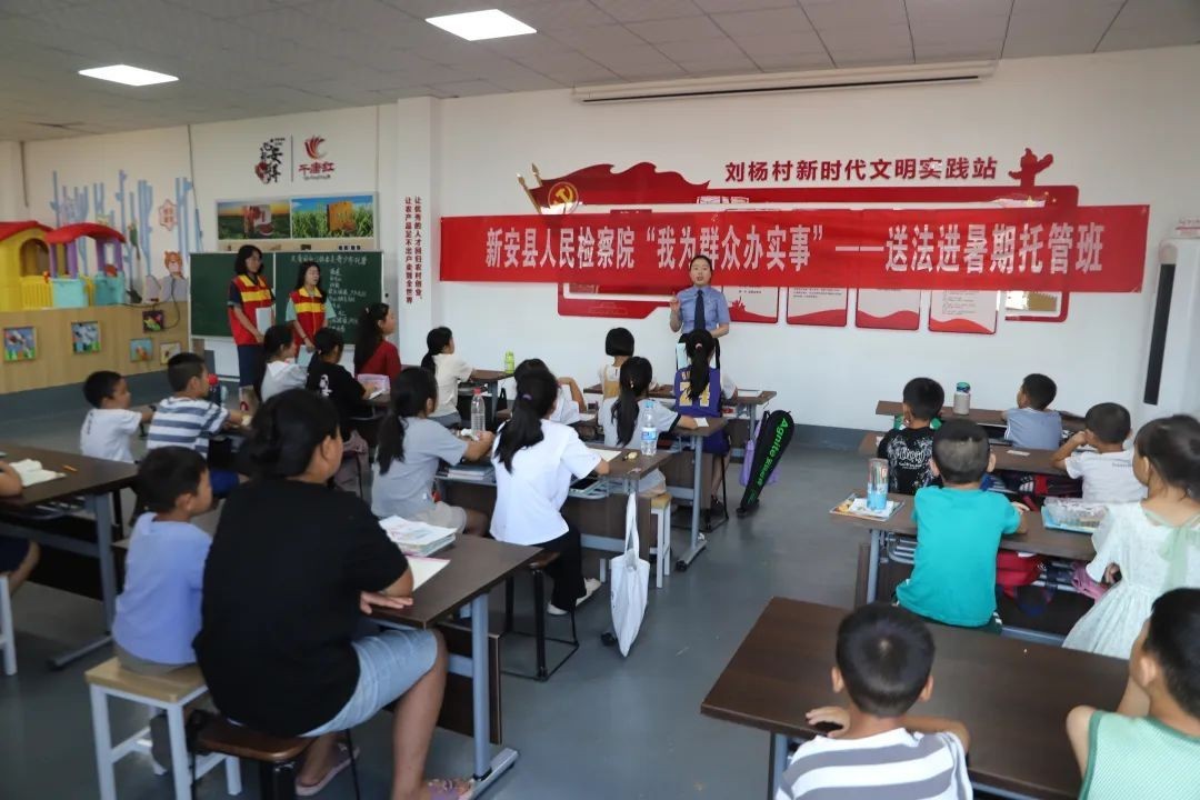 近日,河南省新安县检察院干警来到县铁门镇刘杨村暑期托管班,为这里的同学们送上一堂关于暑假安全和拒绝欺凌的法治教育课。