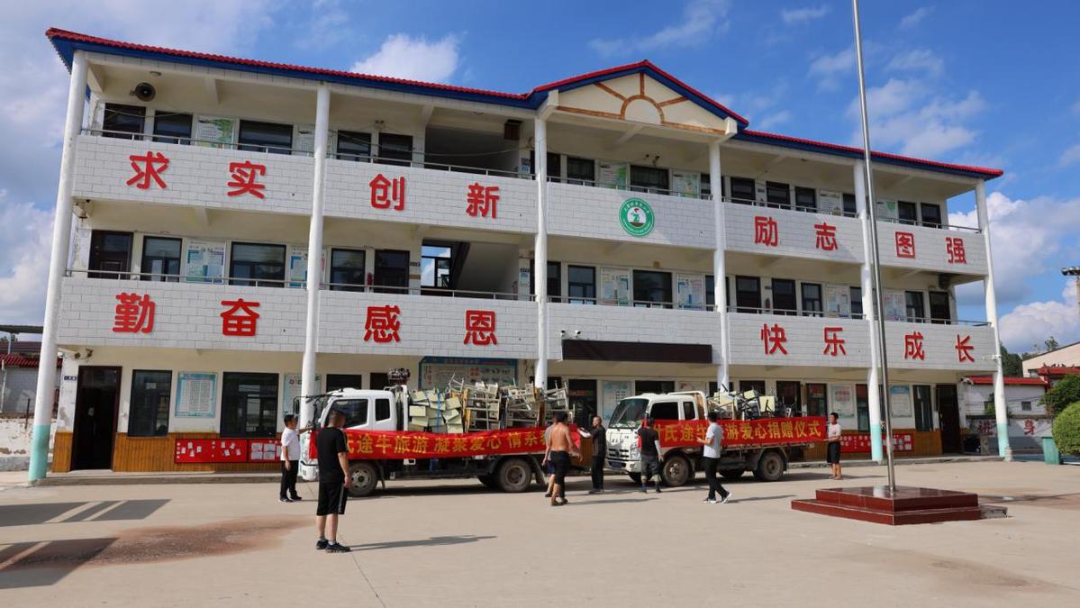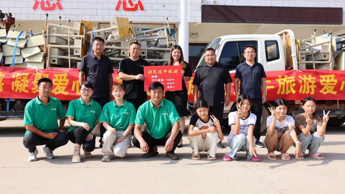 2024年8月6日,阳光灿烂,高温酷暑。在河南省文旅厅驻村工作队的协调下,河南省开封市尉氏县途牛旅游旅行社的负责人满载着百余套桌凳,来到尉氏县枣朱小学进行爱心捐赠,在炎炎夏日为枣朱小学师生带来一丝清凉。
