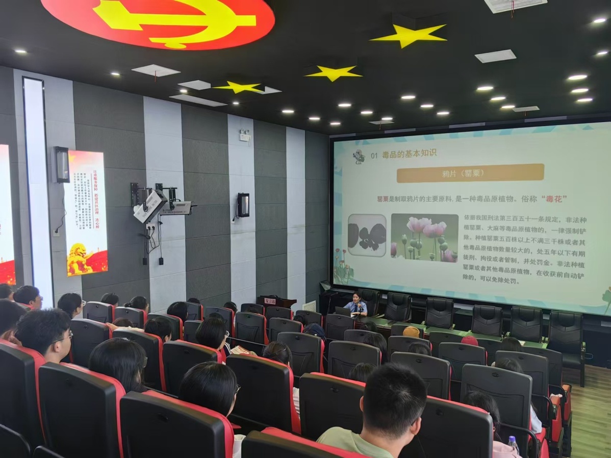 课堂上,检察干警以图片+讲解的形式向大学生们讲述如何鉴别新型毒品与“新潮饮料”,借用小视频和戒毒人员忏悔图片告诫同学们不要吸毒,利用动漫图片的形式向大家宣传了目前常见的骗局,并传授大家如何鉴别是否是诈骗、如何避免走上诈骗道路的小技巧。