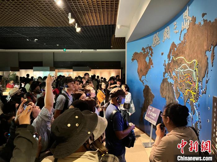 8月18日,台胞在甘肃省博物馆丝绸之路文明展厅参观。王牧雨 摄