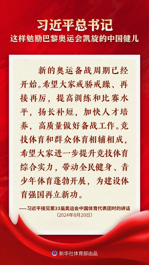 金句 | 习近平总书记这样勉励巴黎奥运会凯旋的中国健儿