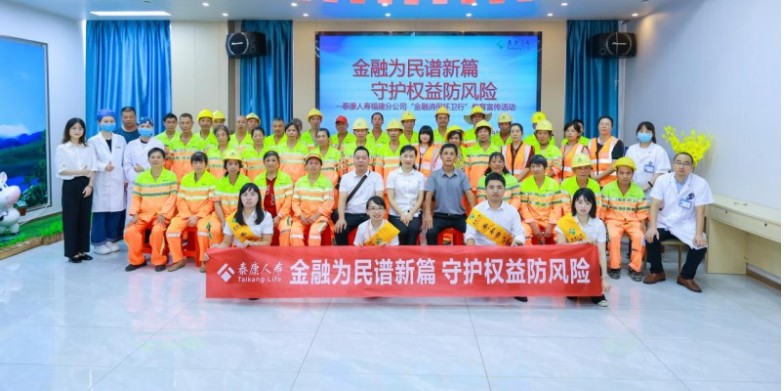为践行消保工作的政治性与人民性,关注、关怀一线基层人员,提升其金融安全意识、普及金融知识,传播金融正能量,9月11日,泰康人寿福建分公司在福州市仓山区举办“金融消保环卫行”的教育宣传活动。泰康人寿福建分公司、东飞美城环境领导及50余名美城环境环卫工人等参与本次活动。