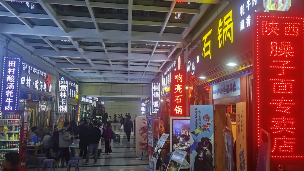 藏面、重庆小面、兰州拉面、青海酿皮、新疆大盘鸡拌面、陕西臊子面、吉林冷面、北京炸酱面……面师傅把把上劲、压面机声声轧压、食客们大快朵颐。