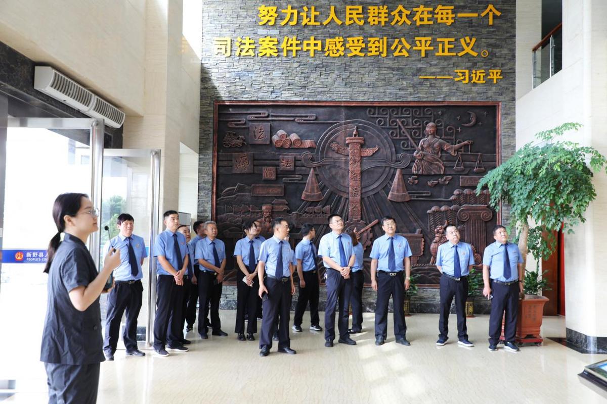 随后,两支部党员来到新野县人民法院法治文化展馆,零距离感受、体验法治文化。该展馆运用声、光、电、场景还原等多种表现形式载体,从法治之蕴、法治之鉴、法治之光、法治之兴、法治之梦五个板块出发,引导党员干警坚定理想信念,牢记司法为民初心,做到公正司法、服务大局。