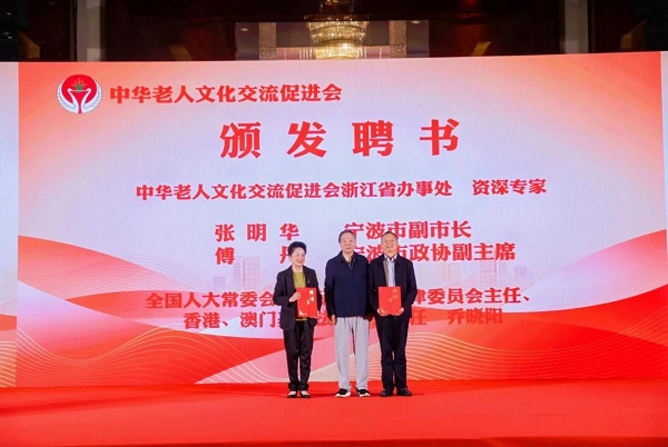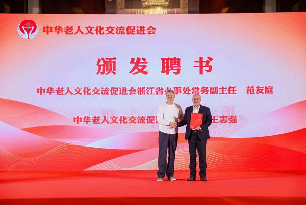 (中华老人文化交流促进会会长古东为浙江省办事处主任颁发聘书)