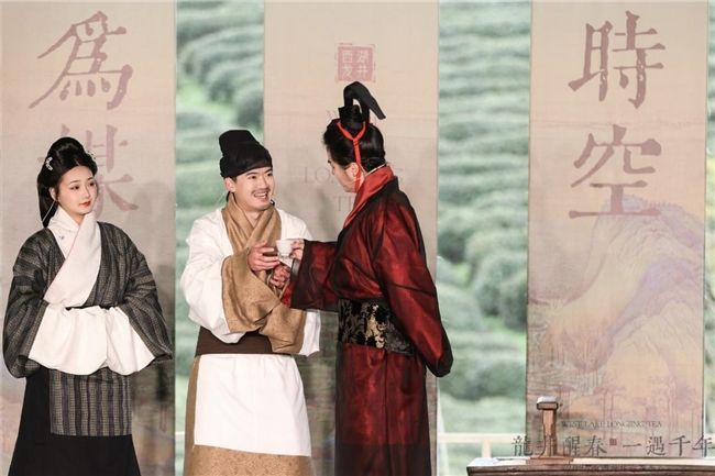 “这三款茶各有特色,龙井鲜爽、七佛甘醇、红梅温润。”茶艺师一边冲泡一边讲解,茶客们细细品味,不时交流感受。除了有好茶品鉴,现场的几场情景短剧更是以茶为媒,串联起了茶文化、茶贸易与茶生活,十分引人入胜。