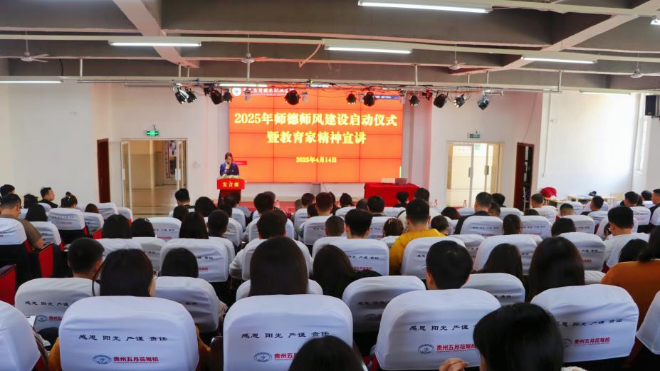 为进一步加强该校师德师风建设,提升教师队伍的整体素质,4月14日,贵州应用技术职业学院在南校区101、102报告厅举行了2025年师德师风建设启动仪式。校长郑晓明、执行校长黄琴、党委副书记、副校长袁波、副校长舒正菊、刘鹏、张均,校长助理周燕及全体教职工参加本次启动仪式,本次活动由校长助理周燕主持。