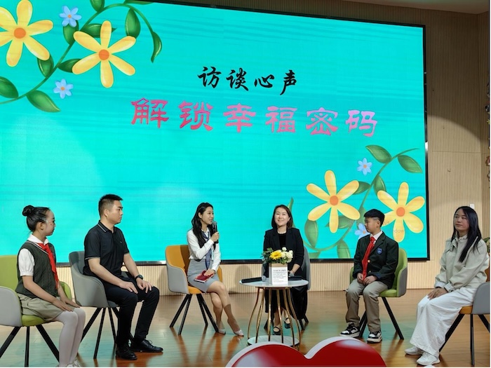 活动展示环节围绕十岁少年的成长展开。在《家校共育》篇章,学生与家长通过古诗朗诵、回忆成长点滴,感受亲情的温暖与力量,体会父母之爱的深沉与伟大。《课程育心》篇章中,学校心理健康代冰洁老师以“幸福五要素”为题,引导学生保持积极的情绪,处理好人际关系,专注有趣的事物,做有意义的事情,取得令自己满意的成就,追求属于自己的真正的幸福。国家二级心理咨询师孟蓉老师运用专业知识与沟通技巧,深入浅出地回答了家长、学生、教师咨询的问题。《活动育心》篇章,孩子们表达了对老师深深的爱和迈向更广阔的人生海洋的决心。