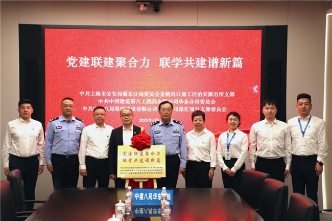 为深化党建引领下的政企协同治理,4月21日,中建八局华东分局、中建八局四公司华东公司与上海市公安局浦东分局金桥出口加工区治安派出所共同举办中建八局华东区域“党建联建聚合力 联学共建谱新篇”三方共建活动,以“红色联盟”赋能基层治理效能提升,为浦东新区高质量发展注入平安动能。