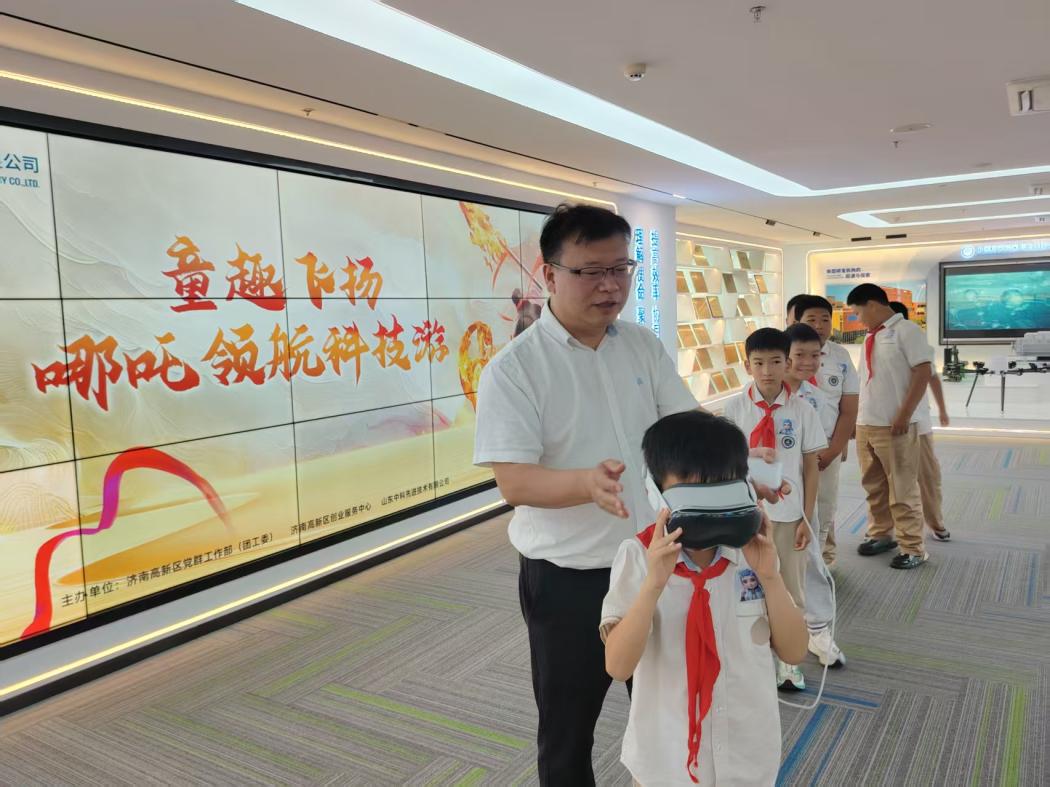 当神话英雄“哪吒”遇上尖端科技,会碰撞出怎样的火花?2025年6月初,济南高新区泰和小学四年级的孩子们带着满心好奇与期待,走进山东先进技术研究院“成果超市”,开启了一场以“童趣飞扬 哪吒领航科技游”为主题的科技探索盛宴。这场由济南高新区党群工作部、创业服务中心与山东中科先进技术有限公司联袂打造的六一活动,将传统文化的智慧基因注入现代科技的肌理,为少年们铺就了一条通往未来的星光大道。