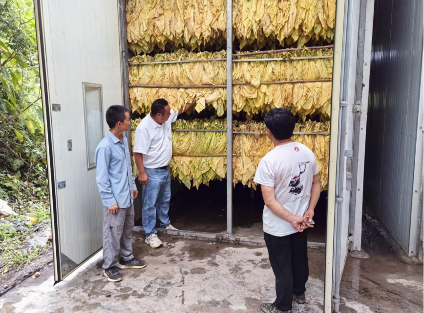 深夜,烟农周恩才习惯性地在睡前检查烤房,手电光扫过观察窗时,他心猛地揪紧——几捆烟叶烟把呈现青色“烟要烤坏了!”老周立马拨通驻村烟技员王廷汉的电话。
