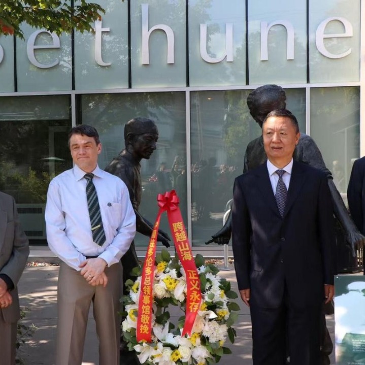 林德利强调,白求恩已成为“中加两国友谊的象征,这是一种建立在相互尊重、决心与钦佩之上的深厚友谊”。