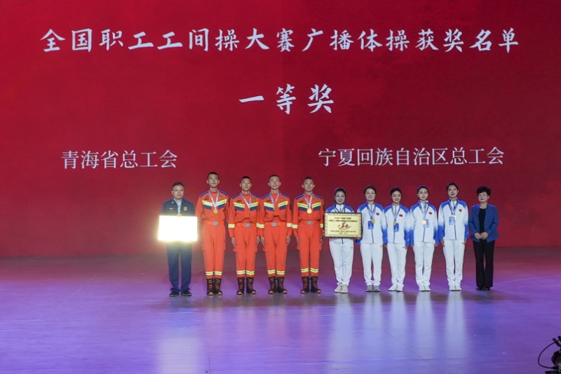 在2025年“中国梦·劳动美”全国职工工间操大赛暨锅庄舞交流展演活动中,宁夏总工会代表队勇夺工间操大赛冠军,创造了宁夏代表队在全国职工同类赛事中最好成绩。