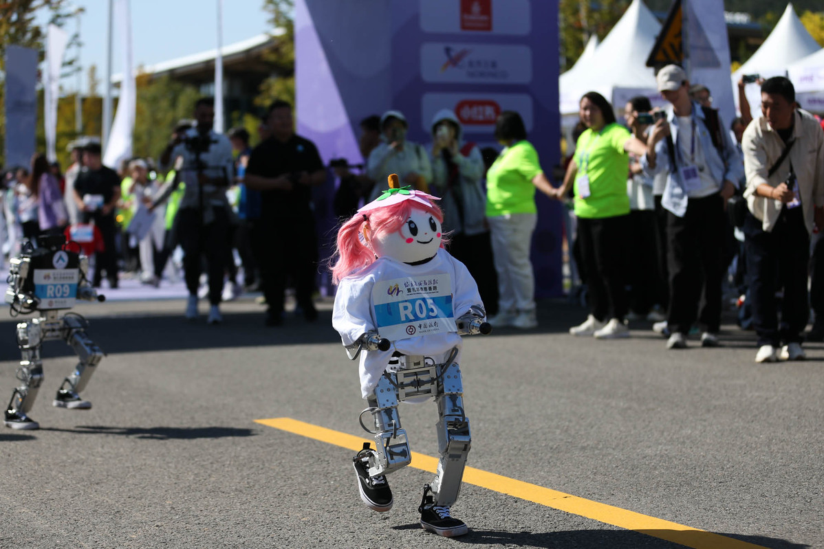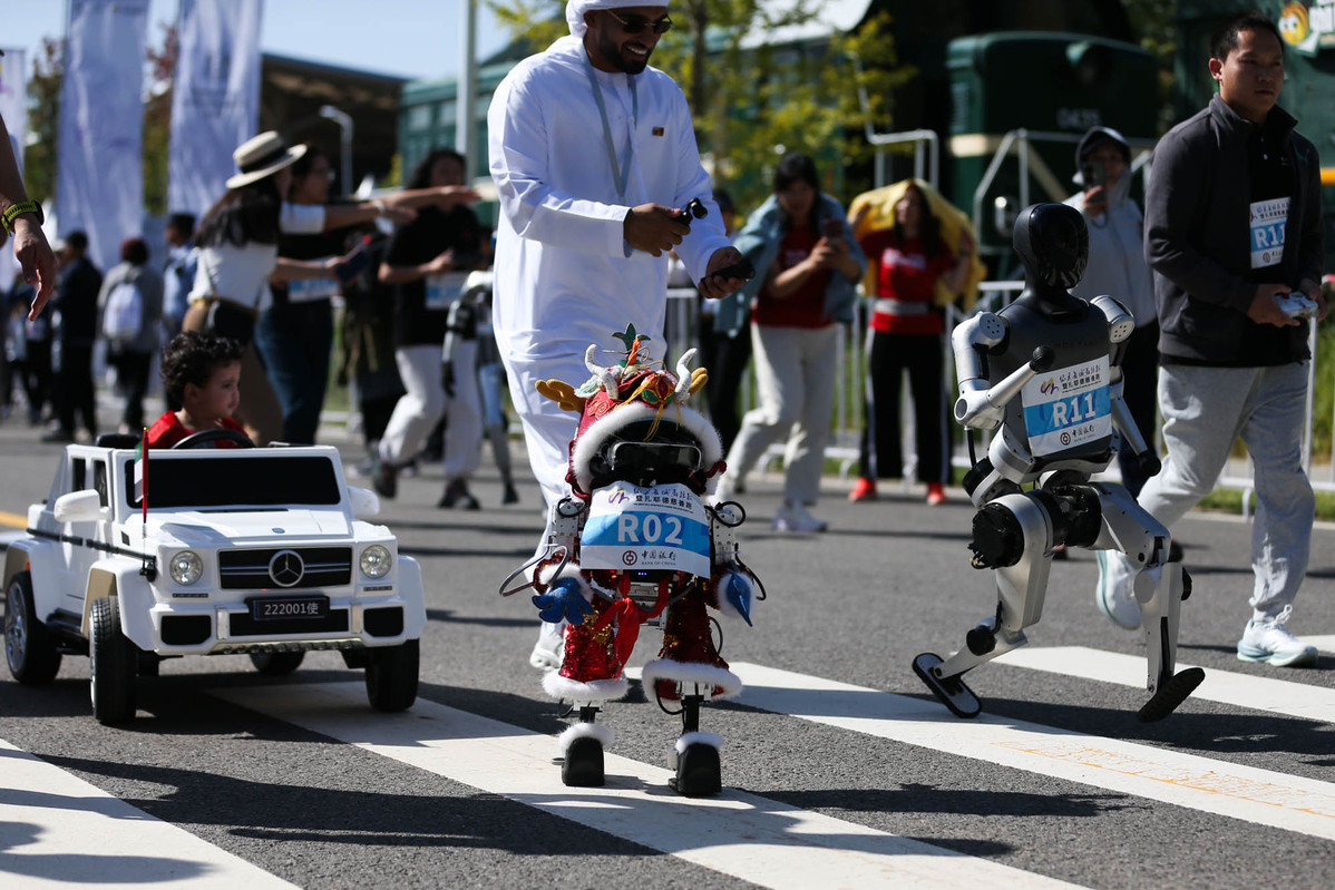 赛事首日举办10公里跑主赛、机器人跑、5公里家庭跑及特需人群跑等特色赛事。其中,独具特色的机器人跑吸引中外选手和观众的围观。9月21日,这一赛事还将举办全程马拉松和半程马拉松。