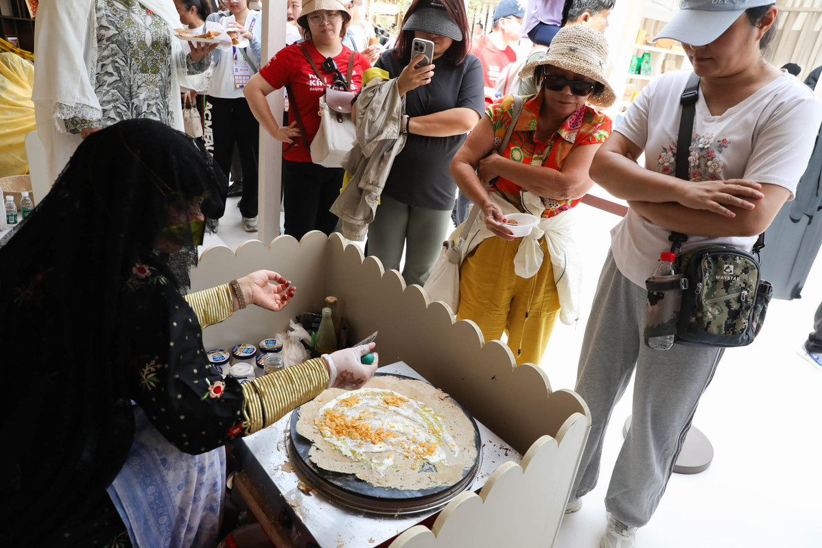 9月20日,游客在“阿联酋之家”文化市集上品尝特色美食。中国日报记者 武晓慧 摄