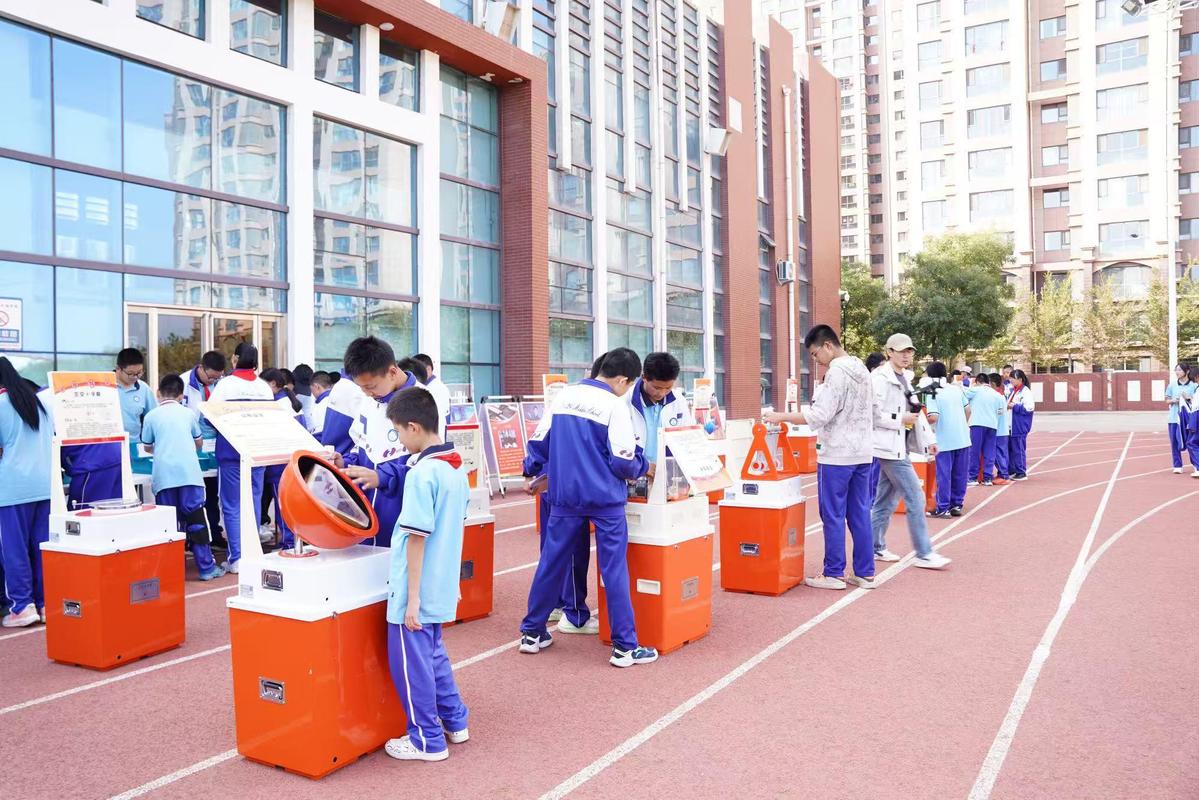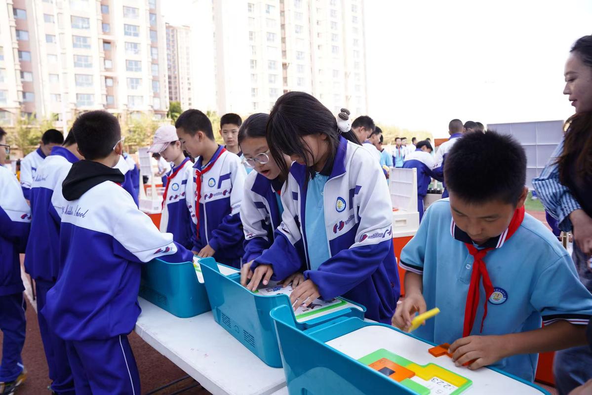 学校操场作为本次活动的主要场地,科普大篷车凭借丰富多样的互动展品吸引了众多学生踊跃参与。展品涵盖光学、力学、电磁学等多个科学领域,兼具生活性与趣味性。科普大篷车作为流动的“科技馆”,不仅拓展了学生的课外知识,更在轻松氛围中培养了其科学思维与探索精神。现场同步开展的“文津图书”套色印章打卡、机器狗表演、矿物岩石小课堂等活动,引发同学们热烈反响。