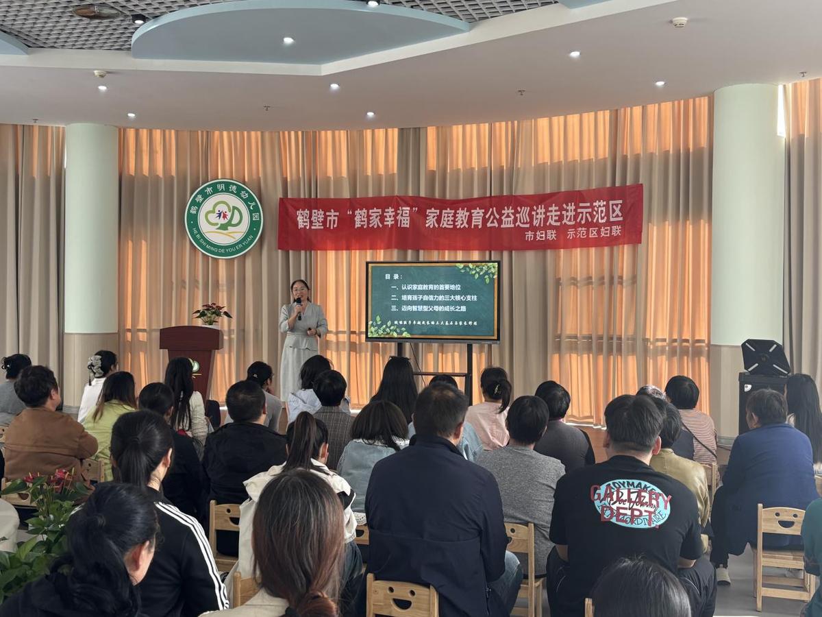 为切实提升家长科学育儿能力,广泛传播现代家庭教育知识和方法,近日,由鹤壁市妇联、鹤壁市城乡一体化示范区妇联联合主办的“鹤家幸福”家庭教育公益巡讲活动在鹤壁市明德幼儿园举行。示范区区直单位干部、街道妇联干部以及家长代表60余人参加活动。