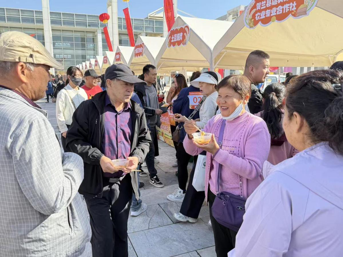 近年来,贺兰县致力于推动农业现代化发展,在本次丰收节中,丰硕的农业成果得到充分展示。在优质农产品展销区,枸杞、大米、牛羊肉等贺兰“六特”农货琳琅满目。