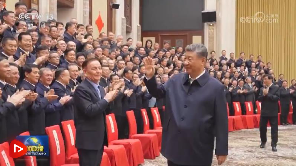 习近平等来到接见现场时,全场响起长时间热烈掌声。习近平向大家挥手致意,不时同代表亲切交流,并同大家合影留念。
