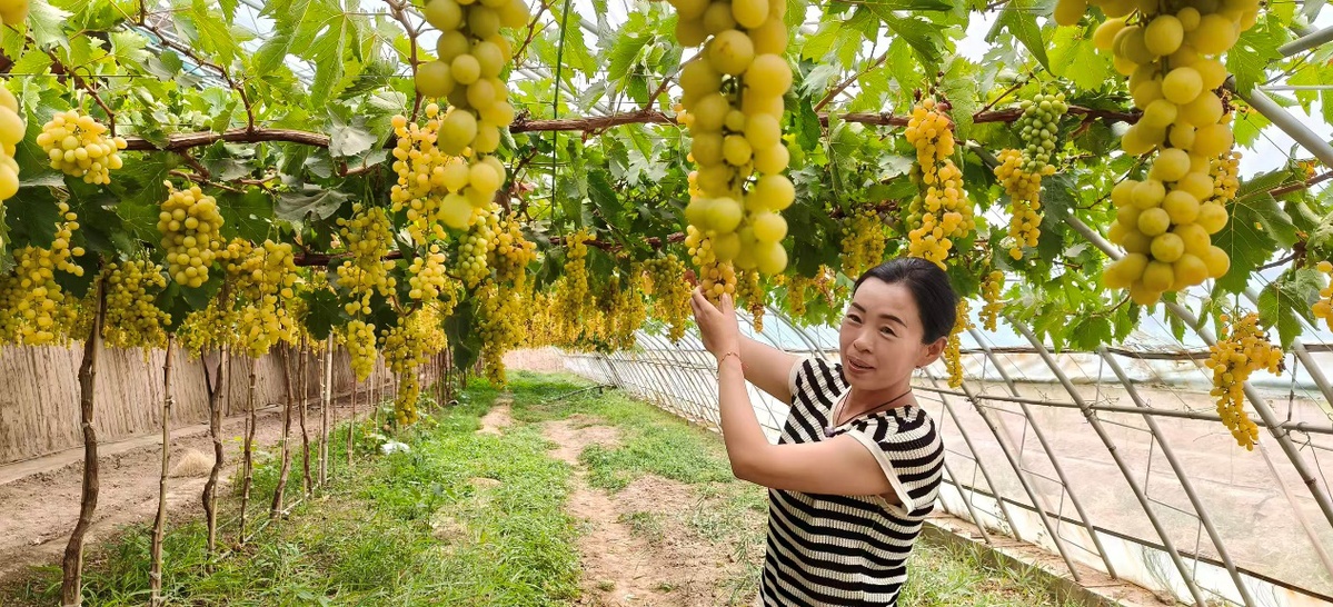 藤蔓蜿蜒,青玉般的葡萄累累低垂。五渡桥村村委会副主任李俊杰一大早就和宁夏淳元农业发展有限公司的技术负责人张强一起查看园区种植的葡萄生长、销售情况。“一栋70米长的棚,公司共在园区租了55栋棚, 每栋棚年租金1.4万元。”李俊杰说,大家以前没有村集体收入的概念,就是闷头搞服务,村集体口袋空空。