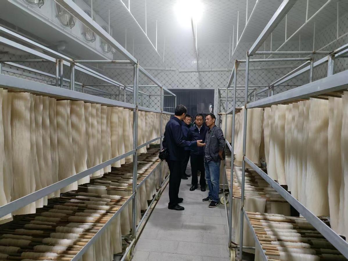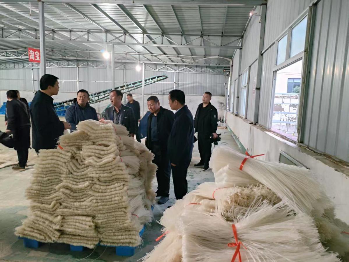 当日下午,调研队伍一行抵达郭南村粉条加工企业,映入眼帘的是热火朝天的生产场景。现代化的生产设备有序运转,工人们熟练地操作着机器,晾晒库里整齐排列的粉条晶莹剔透。代表们首先参观了企业的生产车间,详细了解粉条从原料采购、加工制作到成品包装的全流程。在参观过程中,企业负责人向代表们介绍了企业的生产规模、技术工艺、产品销售等情况。据了解,该企业凭借传统工艺与现代技术相结合,生产的粉条口感爽滑、品质优良,在市场上颇受消费者青睐,不仅畅销周边县市,还通过电商平台拓展了销售渠道,销往全国各地。