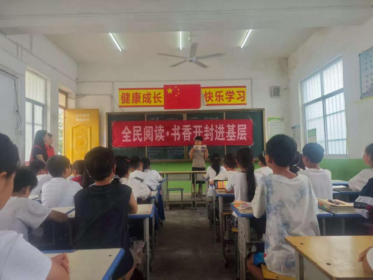 活动当天,谭寨小学多功能教室内氛围热烈。黑板上 “全民阅读·书香开封进基层” 的标语醒目,后排展示着同学们带来的各类书籍。上午 ,“读书分享会” 开启,五年级一班的陈琪媛、侯浩琪、渠妍妍等六名同学率先登台。