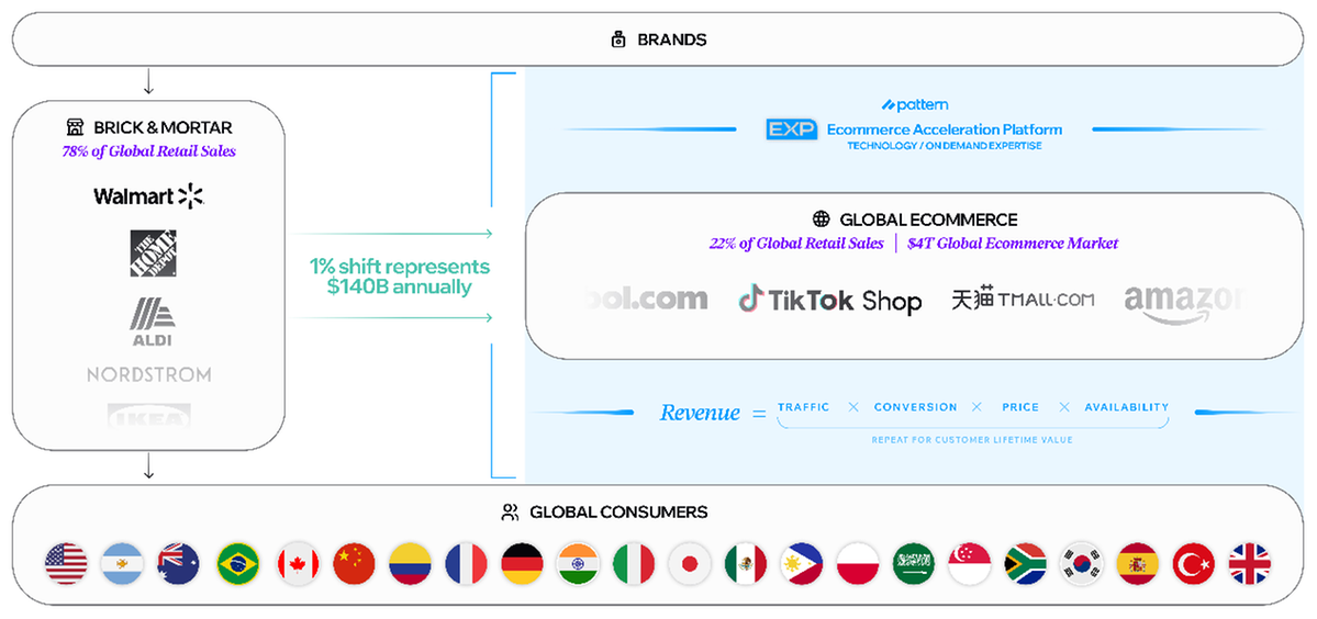 目前,Pattern业务覆盖亚马逊、沃尔玛、TikTok、Target、天猫、京东、抖音等60多个电商平台,服务遍及全球100多个国家和地区,并在所有核心市场建立了本地化运营团队,在实现自身增长的同时,也为品牌的全球扩张提供了有力支持。
