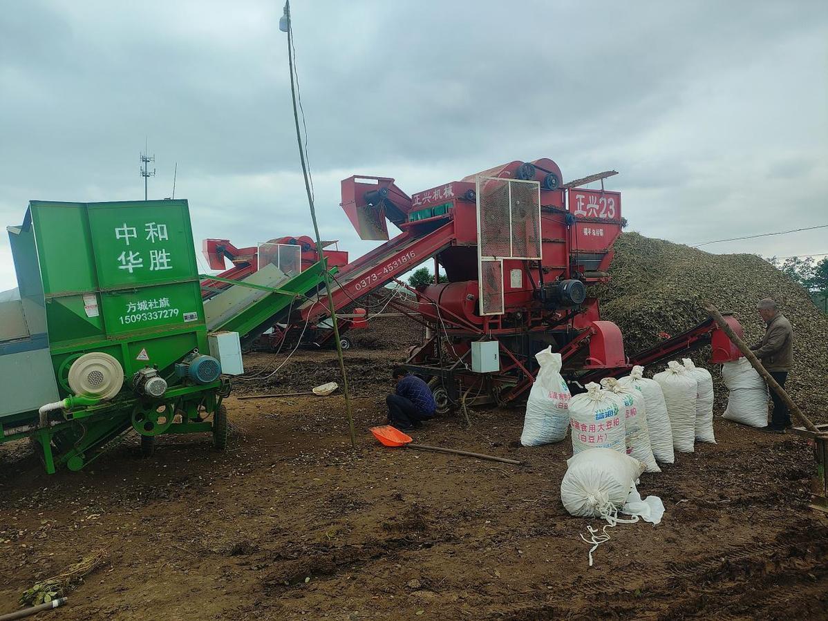9月23日,镇平县曲屯镇种植户正在用机器打花生