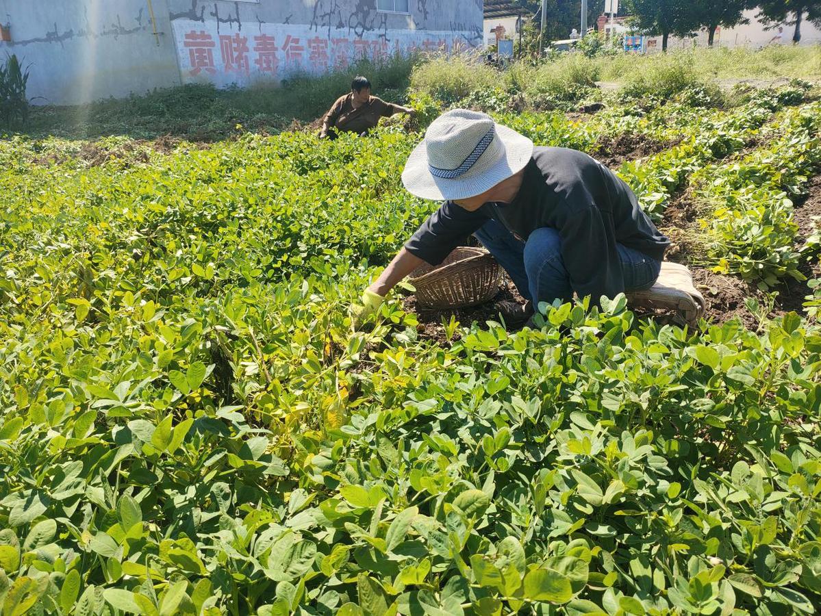 9月24日,镇平县曲屯镇农户正在田间采收花生