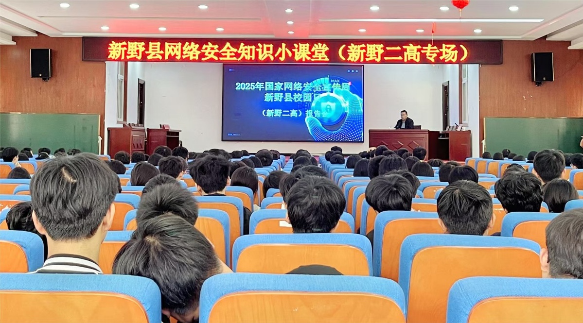 为切实提升青少年网络安全意识和防护能力,在2025年国家网络安全宣传周新野县活动期间,新野县委网信办联合县教育体育局在新野县第二高级中学校举办新野县网络安全进校园主题活动,为广大师生送上一堂生动实用的网络安全“必修课”。