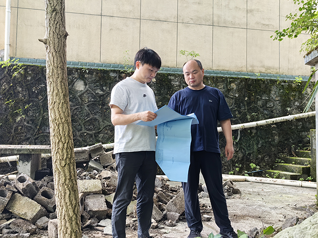 除了日常零星维修,基层烟叶收购站点办公楼和收购区升级改造等工程项目,也始终由刘工牵头负责。在他看来,“工程项目关乎职工长期使用安全,每一道流程、每一个细节都容不得半点马虎”。去年夏天,龚滩烟叶工作站收购仓库轻钢雨棚改造,从前期现场设计到竣工验收,刘工全程以“钉钉子”精神抓规范、守标准。前期勘察时,他带着图纸根据基层使用人员提出的需优化的细节逐一核对现场,小到钢架焊接点的防锈处理,大到基础开挖的精准测算,都逐一记录在项目台账;施工材料验收过程中,只要发现一批钢材型号与设计不符时,当即要求施工单位退回更换,施工单位打趣他太较真,他总说:“工程数据差一分,质量可能就差一丈。”