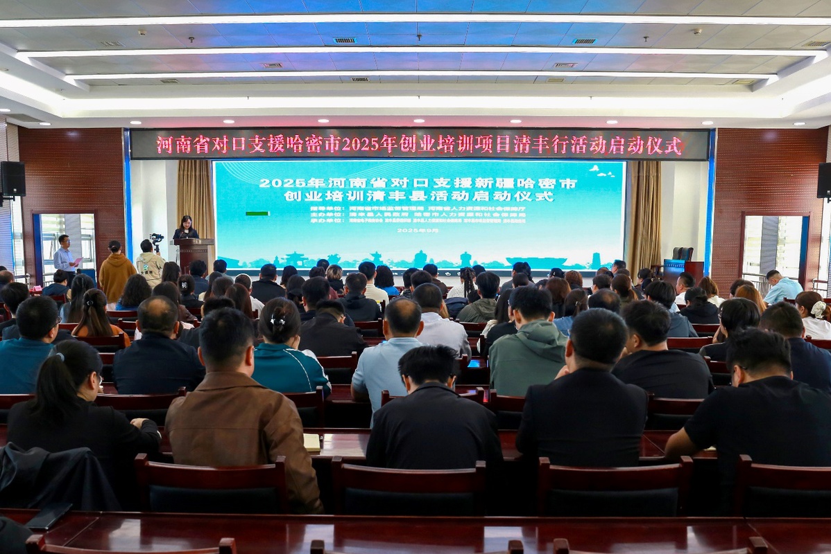9月25日,河南省对口支援哈密市2025年创业培训项目清丰行活动正式启动。县委副书记、县长赵丹致辞,河南省市场监管局网络交易监督管理处三级调研员张栋、电子商务协会秘书长张苏丰,哈密市人社局、48名河南省援疆对口支援哈密市创业人员,县市场监管局、商务局等县直单位,各乡(镇、办)及部分电商直播代表参加。副县长纪泉水主持启动仪式。