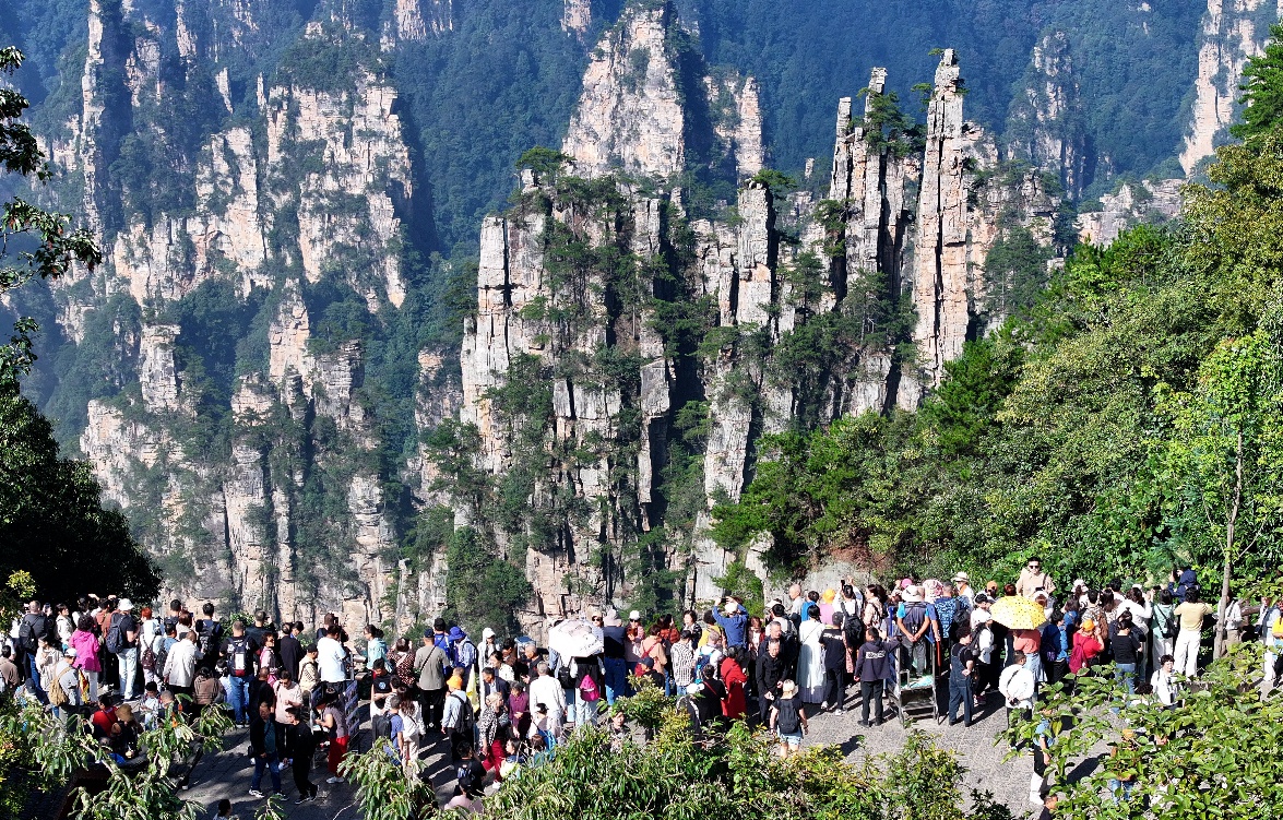游客在湖南张家界国家森林公园游览。吴勇兵 摄