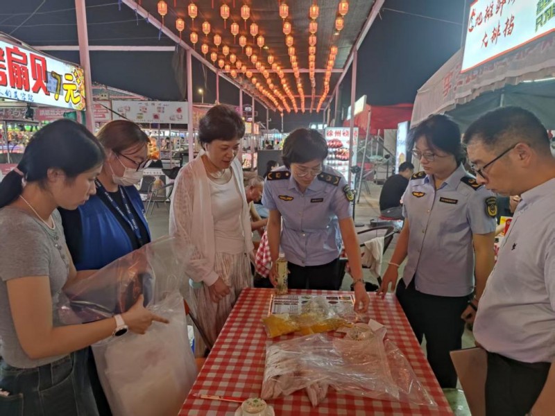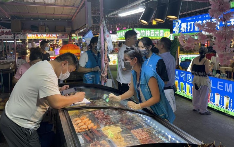 为进一步规范辖区夜市餐饮经营秩序,筑牢食品安全防线,栖霞区市场监督管理局统筹调配执法力量,联合属地街道和专业检测机构,对辖区夜市餐饮经营主体开展专项夜查行动,全面排查食品安全隐患,维护消费者合法权益,切实保障市民“舌尖上的安全”。