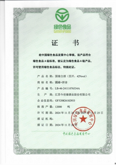 健康属性是国缘四开的另一张王牌。通过优化发酵工艺和延长陈酿时间,酒体中醛类物质含量显著低于行业平均水平。早在2018年,国缘对开和国缘四开两款产品便已获得“绿色食品A级产品”的殊荣。其中国缘四开作为核心大单品,自2004年上市以来已历经五代升级。第五代产品通过“二次入坛缔合”工艺,实现酒体甜润净爽,口感醇厚丰满,饮后更加怡畅舒适。