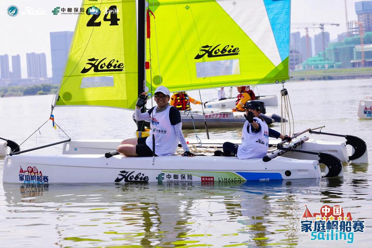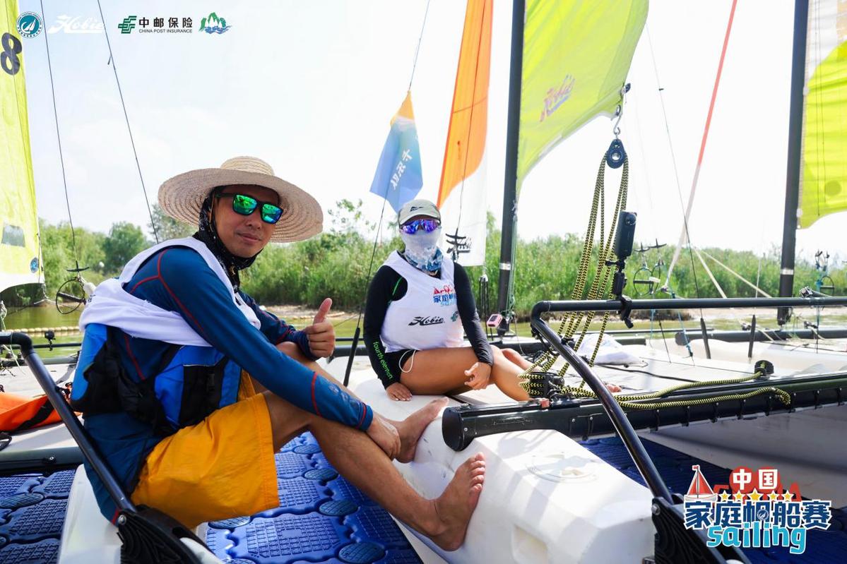 Hobie T1 级别冠军 “波波里队”,这支以女儿名字命名的队伍,背后藏着一段温暖的参赛故事。“我们队名‘波波里’,就是女儿宋波波里的名字。这次来参赛,主要想让她体验掌舵,积累点舵手经验。” 波波里队队长笑着分享,“这里环境是真的美,水杉映着湖面特别舒服,但风小且风向多变,对航行判断要求很高。赛前我们和其他船队聊了不少,还学了调整帆骨的技巧,家帆赛真的是个能互相学习、交流技术的好平台。” 谈及比赛体验,波波里队也提及了青山湖的独特挑战:“这次比赛风非常小,所以对配合的挑战非常重要。帆船就是这样一个迷人的运动,在风小的时候要沉得住气,耐心等风来;风来的时候,抓得住。我们在倒数第二轮的时候,就是稳住方向,最后在终点线时追上了50厘米的距离,超过了一名前面的选手,非常惊险。这也是家帆赛强调合作、配合的绝佳体现。”