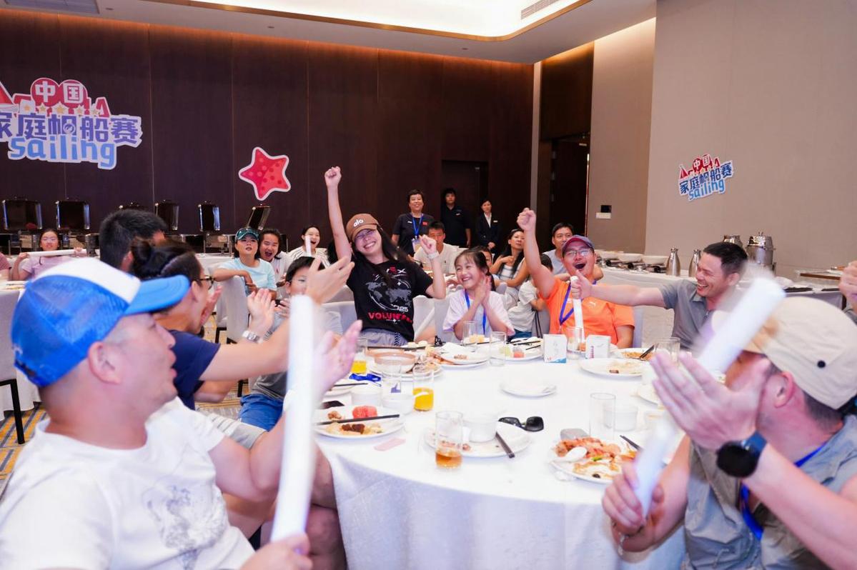 在水手之夜上,家庭才艺表演、亲子游戏等互动环节轮番上演。参赛者在美食与音乐的陪伴下,分享航海趣事、增进彼此情谊,延续家帆赛独有的“大家庭”氛围。“白天和队友一起参与比赛,晚上和其他家庭一起玩游戏,这种既热血又温馨的体验,是其他比赛很难有的”来自武汉的参赛队伍表示。