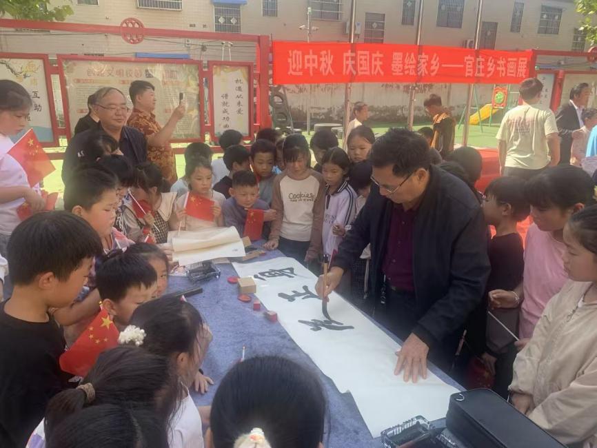 时值国庆、中秋佳节来临之际,为弘扬中华民族传统文化,营造热烈喜庆、文明祥和的节日氛围,近日,河南开封杞县官庄乡到社区小学组织开展了“迎中秋,庆国庆,墨绘家乡”书画展活动,通过笔墨传情、全民参与的形式,让节日暖意与文化馨香浸润乡野。