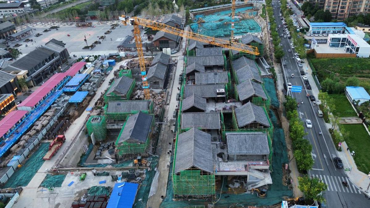 周口关帝庙历史街区城市更新改造项目紧锣密鼓组织施工,施工现场热火朝天,项目正在进行商业街外墙仿古砖及玻璃幕墙等施工,120余名建设者用饱满的热情抢抓施工进度,奋力同时间赛跑,确保四季度实现商业街区域全面交付。该项目旨在延续城市文脉、提升城市品质、树立城市形象,是打造周口市文化名片的重要工程。