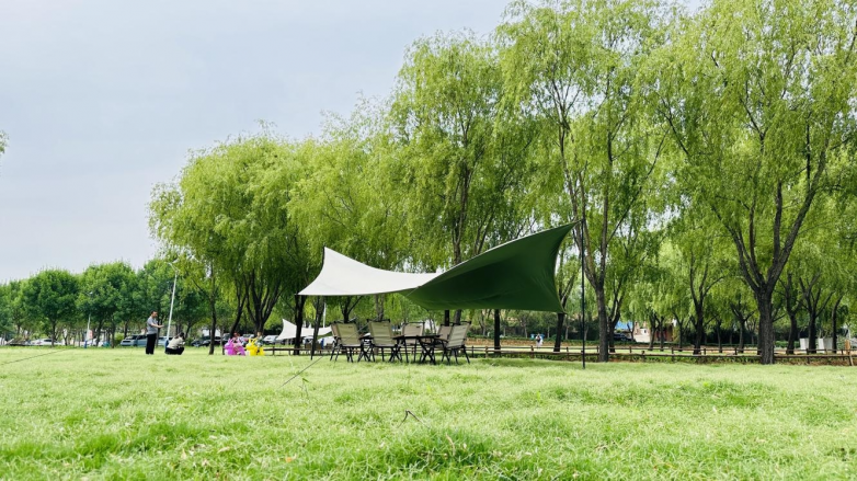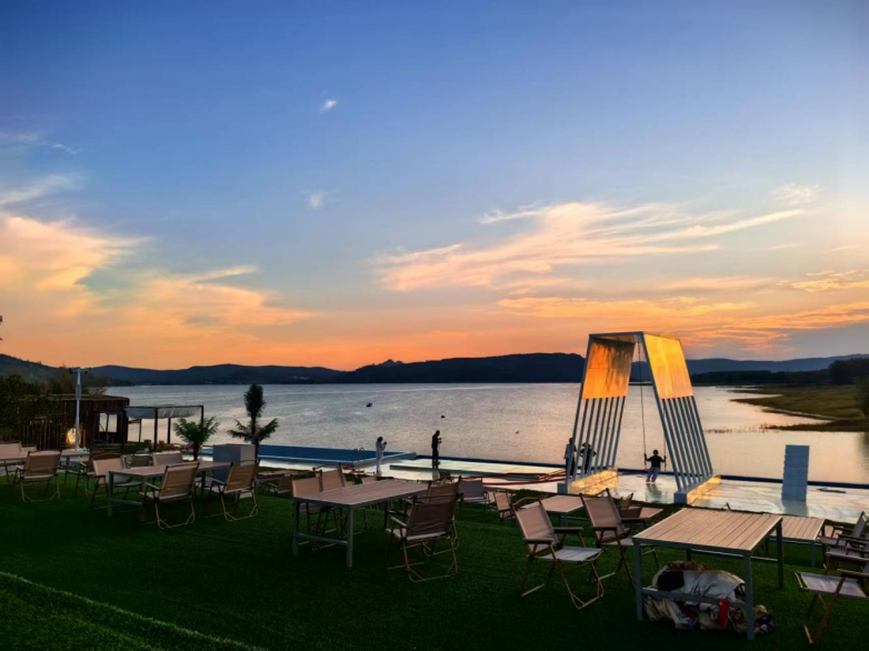 而在龙泉湖南岸,崮下湖畔片区的南黄露营地,一场乡村民谣音乐会正悄然上演。秋月悬于崮上,湖水泛着微光,游客随旋律轻轻摇摆,将心神浸入晚风、灯火与吉他的温柔共鸣里。