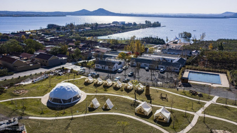 “寻味人间烟火,探访洱海秘境”。时尚的无边泳池、天空之镜、洱海秋千、网红天梯与纱幔凉亭——这些备受追捧的网红元素,竟巧妙藏身于沂蒙群山深处。沂水诸葛镇陌上花开片区,依托龙泉湖畔的原生荒地,打造出一处名为“洱海秘境”的浪漫体验区。项目为游客提供轻食餐饮、网红打卡、亲子亲水等高品质沉浸式服务,自开放以来,迅速成为年轻游客争相到访的热门目的地,被亲切地称为沂蒙山中的“小洱海”。项目所在地葛庄村也成功获评国家3A级旅游景区。诸葛镇宣传委员牛德兰这样介绍。