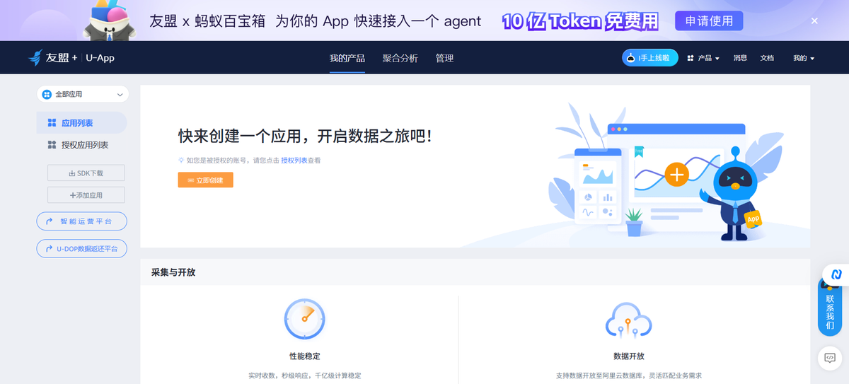 (图为友盟umeng.com U-APP产品控制台页面展示)